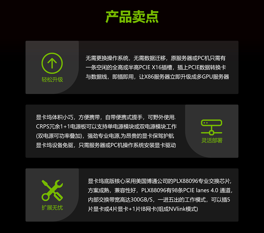采用Broadcom PEX88096 96条Pcie通道共享技术